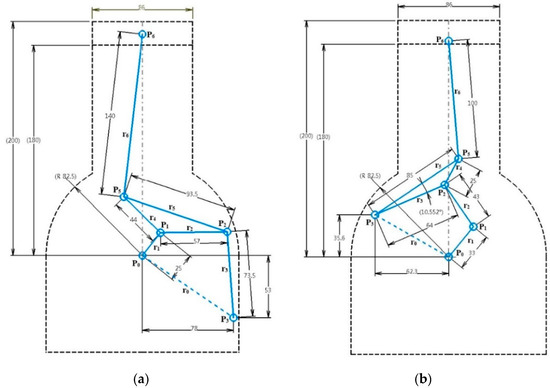 Initial design of VCR engine mechanisms: (a) Stephenson III and (b) Watt II.