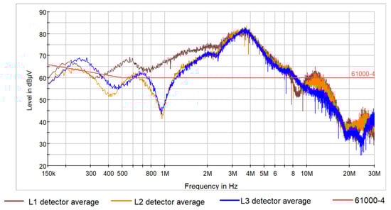 Measurement results—levels of conducted disturbances in the three-phase wires supplying the operating electrodes of the reactor.