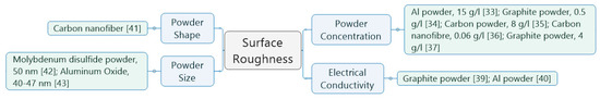 Chow et al. [50] presented that either Al or SiC powder-mixed dielectric fluid increased the material-removal depth and surface quality. The result shows that Al powder provides the largest sparking gap due to its optimal conductivity.