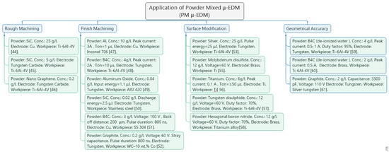 Summary of the application of powder-mixed μ-EDM.