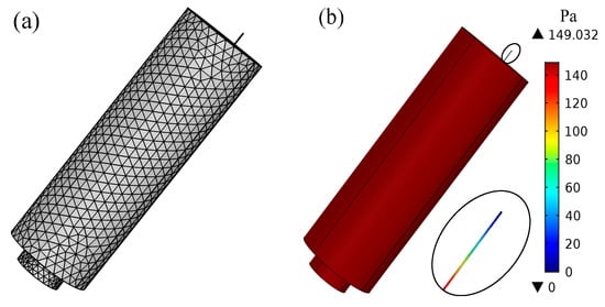 For two models considering the pressure leakage effect, the outer end of the equalizing hole is connected to the atmosphere and the boundary condition is set as pend = 0 Pa. Meanwhile, for two sealing models the outer end is closed. For the other aspect, for two models considering the heat conduction effect, the surrounding walls are set as isothermal—that is, the temperature boundary Tt is always 0. Meanwhile, for two adiabatic models the chamber walls are set as adiabatic—that is, the temperature gradient , where is the normal vector.