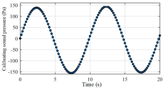 Taking the calibration process at 0.1 Hz as an example, the second order Fourier series is used to fit the waveform of the calibrating sound pressure, as shown in Figure 14.