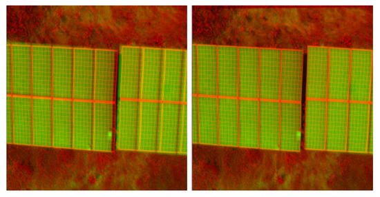 The drone captured images of the entire PV station at an altitude of 10 m while moving with a velocity of 3 m/s. RGB and Thermal images were captured at an interval of 1 s with a resolution of and , respectively. The captured images were stored in internal SD card. A trigger signal from the main controller was used to capture images from thermal and RGB camera simultaneously.
