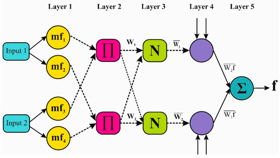 The first proposed ANFIS model had five layers. Figure 1 schematically depicts the structure of ANFIS. The rules are as follows [83].
