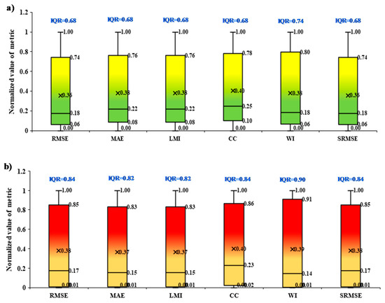 To evaluate the accuracy of proposed estimator models, the performance indices such as mean square error (RMSE), Standardized Root Mean Square Error (SRMSE), mean absolute error (MAE), Legate and McCabe’s index (LMI), correlation coefficient (CC), PBIAS, Willmott’s index (WI), and relative root mean square error (RRMSE) are employed as following equations [27,97,98,99,100]: