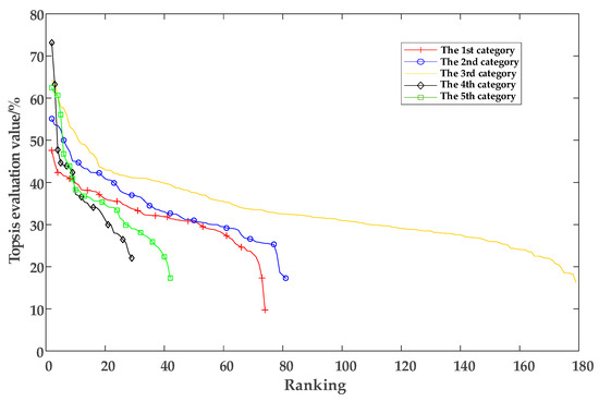 TOPSIS and visekriterijumsko kompromisno rangiranje (VIKOR) [30] are two kinds of decision-making methods, but the latter requires a criterion weight coefficient and criterion value to be determined, which is difficult to achieve in practical decision-making. However, the TOPSIS method has become mature, and many decision-making problems are solved by TOPSIS. Therefore, this paper adopts a more mature TOPSIS method for comprehensive evaluation.