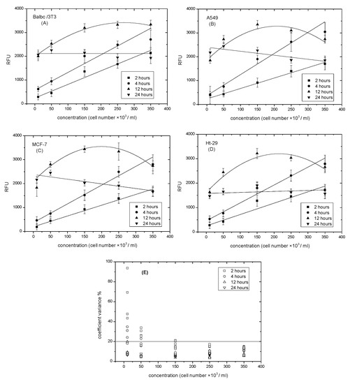 - Hamalainen-Laanaya, H.K.; Orloff, M.S. Analysis of cell viability using time-dependent increase in fluorescence intensity. Anal. Biochem. 2012, 429, 32–38. [Google Scholar] [CrossRef]