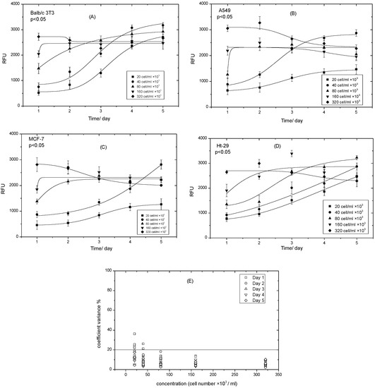 2.6. Determining the Calibration Curve of Resazurin and Cell Numbers