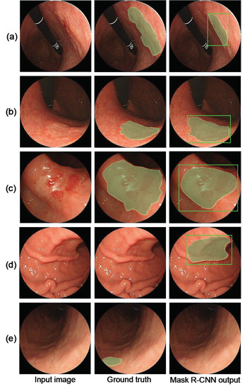 - Hirasawa, T.; Aoyama, K.; Tanimoto, T.; Ishihara, S.; Shichijo, S.; Ozawa, T.; Ohnishi, T.; Fujishiro, M.; Matsuo, K.; Fujisaki, J.; et al. Application of artificial intelligence using a convolutional neural network for detecting gastric cancer in endoscopic images. Gastric Cancer 2018, 21, 653–660. [Google Scholar] [CrossRef]