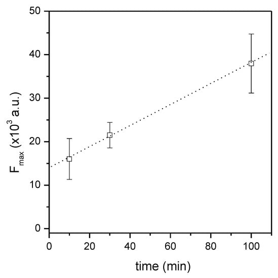 Comparing the fluorescence signal intensity that is detected on microdevices fluxed for different times, a linear increment is clearly visible as the fluxing time is increased, as expected. This behavior confirmed that the channel surfaces are able to capture the microRNA even when it is dissolved in a complex matrix, such as human plasma. Moreover, from the same data, one infers that this capability is maintained constant in time, leading to the linear increase of captured miRNAs. Blood plasma, indeed, contains a lot of components (proteins, lipids, small molecules, etc.), which presumably can be adsorbed to the positively-charged surfaces as well as nucleic acids. These components, however, do not impede the further adsorption of microRNA on the surface sites still available. This potentiality of PDMS-based microdevice was already demonstrated by our group with a different type of PDMS microdevice with a limited surface available for microRNA capture [19,20]. The augmented surface of the here presented microdevices together with their handling automation could help to introduce similar microdevices for the use in real setting.