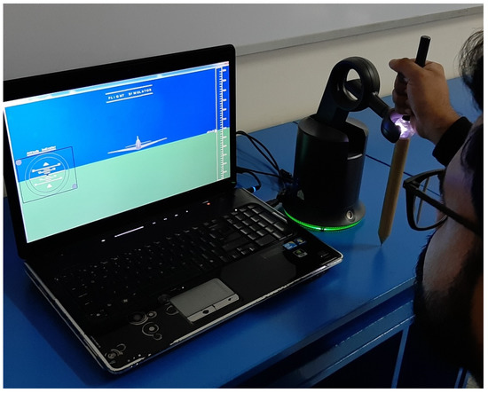 Moreover, in order to evaluate the effect of haptics on altitude hold subjectively, all the participants were also asked to fill out a questionnaire after performing the experiment, which gave us a quick insight into the individual’s perceived performance. Figure 7 shows the experimental setup, consisting of a high resolution graphic display (altimeter on right and attitude meter on left), earphones, and a Touch 3D Stylus haptic device with maximum force of 3.4 N, which is sufficient for this experiment.