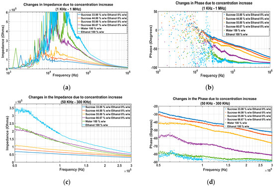 - Juansah, J.; Yulianti, W. Studies on Electrical behavior of Glucose using Impedance Spectroscopy. In IOP Conference Series: Earth and Environmental Science; IOP Publishing: Bristol, UK, 2016; Volume 31, p. 012039. [Google Scholar]