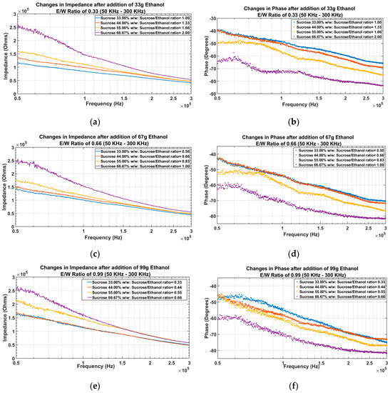 4.1.1. EIS of the Solutions before Adding Ethanol