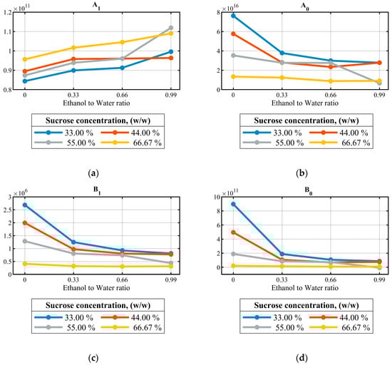 | Solution Index | Effective Ethanol to Water Ratio | Different Concentrations of Sucrose Solutions (% w/w) | Effective Sucrose/Ethanol Ratio in 100 mL Solution | Tfest Fit % | ||