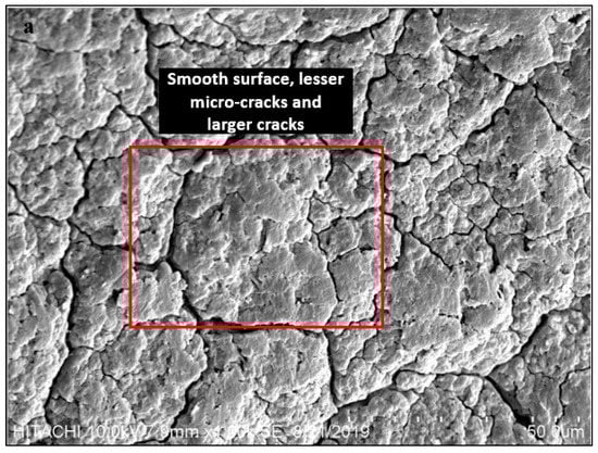 Much research has been conducted to modify the surface properties of rubber to strengthen the adhesion of the rubber with the matrix. Potential methods include alkaline treatment using sodium hydroxide (NaOH); acidic treatments using sulfuric acid, potassium permanganate, or silane; and many more [16,21,25,26,27,28,29,30,31]. Surface treatments will oxidize the rubber surface and form more polar groups, which will attach to the polar groups in the matrix. This phenomenon will increase the rubber surface energy thus improving the rubber hydrophilicity and wettability. The surface treatments also etched the rubber surface and it becomes rougher which allows better coverage of the matrix onto the rubber [22,23,26,32].