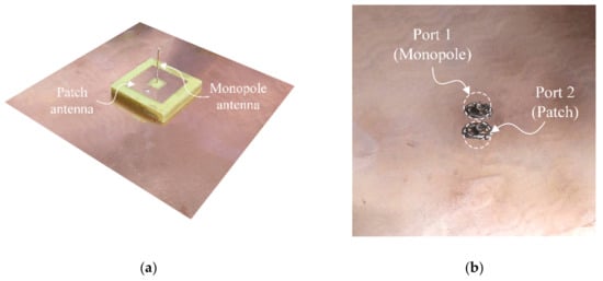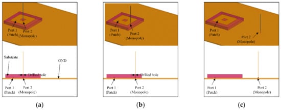 - Han, T.-Y.; Huang, C.-T. Reconfigurable monopolar patch antenna. Electron. Lett. 2010, 46, 199–200. [Google Scholar] [CrossRef]