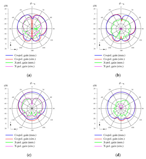 - Hur, J.; Choo, H.; Byun, G. Design of a small controlled reception pattern antenna array with a single-layer coupled feed structure for enhanced bore-sight gain and a matching bandwidth. Electromagnetics 2017, 37, 297–309. [Google Scholar] [CrossRef]