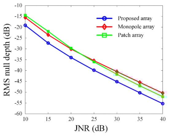 - Byun, G.; Choo, H.; Kim, S. Improvement of pattern null depth and width using a curved array with two subarrays for CRPA systems. IEEE Trans. Antennas Propag. 2015, 63, 2824–2827. [Google Scholar] [CrossRef]