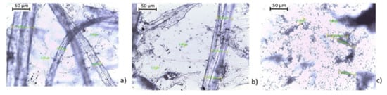 (a) Integral fibres manifest in unbleached virgin Kraft pulp compared with (b) multiple recycled newsprint fibre: optical microscopy images were taken using a Leica DM 750 (Leica Microsystems GmbH, Ernst-Leitz-Strasse 17-37, Wetzlar, 35578 Germany).