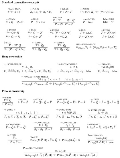 - Bornat, R.; Calcagno, C.; O’Hearn, P.; Parkinson, M. Permission Accounting in Separation Logic. In Proceedings of the Principles of Programming Languages (POPL), Long Beach, CA, USA, 12–14 January 2005; pp. 259–270. [Google Scholar]