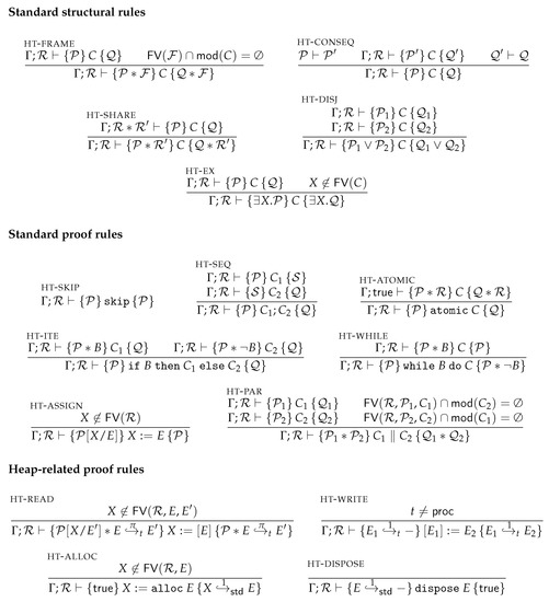 - Feng, X.; Ferreira, R.; Shao, Z. On the Relationship Between Concurrent Separation Logic and Assume- Guarantee Reasoning. In Proceedings of the European Symposium on Programming (ESOP), Braga, Portugal, 24 March–1 April 2007; De Nicola, R., Ed.; Springer: Berlin, Germany, 2007; pp. 173–188. [Google Scholar]