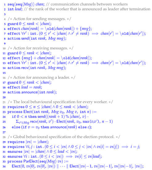 - Leino, K.; Müller, P.; Smans, J. Verification of Concurrent Programs with Chalice. In Proceedings of the Foundations of Security Analysis and Design (FOSAD), Bertinoro, Italy, 30 August–4 September 2009; Volume 5705, pp. 195–222. [Google Scholar]