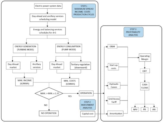 A three-step scheme of the methodology proposed to study the economic feasibility and profitability of UPSH plants is shown in Figure 1.