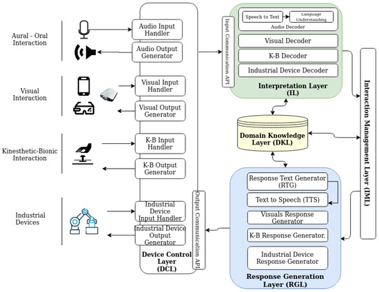 - The DCL is responsible for gathering the operators’ input to communicate with the system. For the proposed use cases, the first one uses only voice input while the second one combines additional devices such as optical readers too. For the voice interaction, microphones with noise cancellation capture the audio signals. These signals are streamed using media streaming libraries such as FFmpeg into an energy-based automata that discards any silent or noisy audio segment. The remaining audio segment is sent to the Input Communication API.