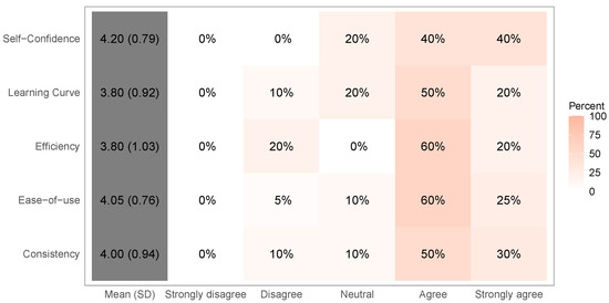 - Ease-of-use: this dimension involves questions regarding the systems’ difficulty. This is related to the naturalness of the system and whether it was perceived as intuitive by the operators.