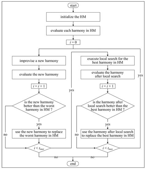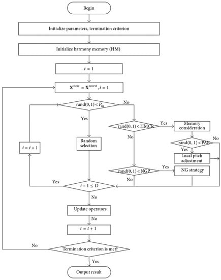 Experimental studies have shown that the proposed algorithm’s optimization efficacy exceeds most known optimized HS versions. For comparison, Figure 3 displays the flowchart of the HS parallel functional parameter algorithm.