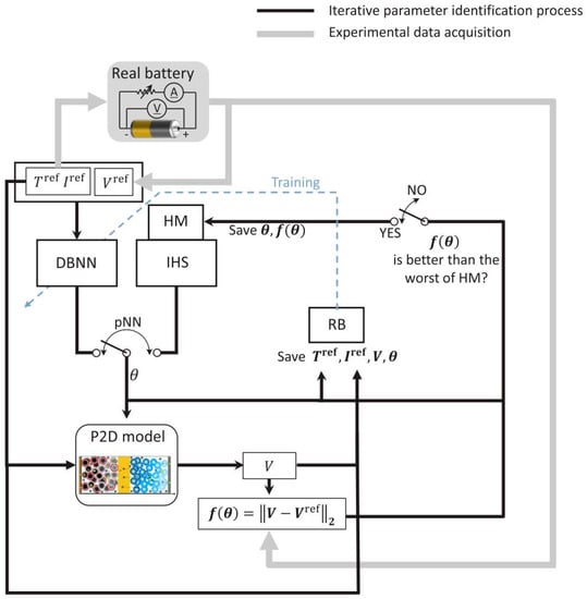 - Kim, M.; Chun, H.; Kim, J.; Kim, K.; Yu, J.; Kim, T.; Han, S. Data-efficient parameter identification of electrochemical lithium-ion battery model using deep Bayesian harmony search. Appl. Energy 2019, 254, 113644. [Google Scholar] [CrossRef]