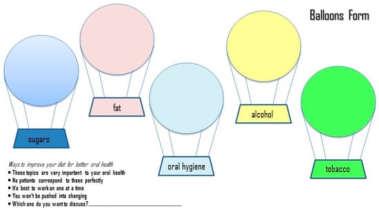 Balloons’ form. Adapted for diet oral health coaching from [,].