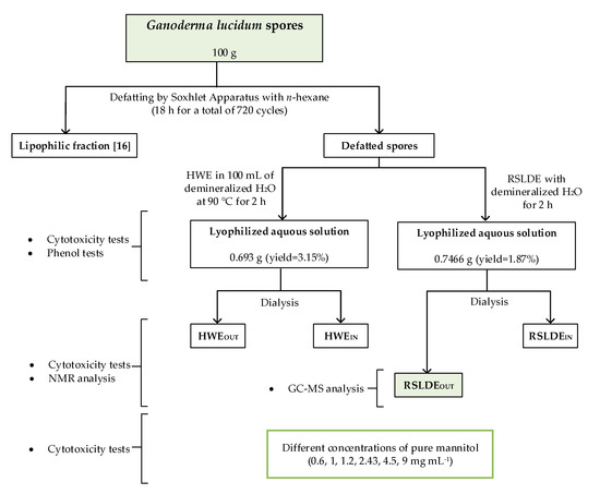 The spores of Ganoderma lucidum were at first defatted in a Soxhlet apparatus with n-hexane. The overall strategy employed in this work has been schematically reported in Figure 1.