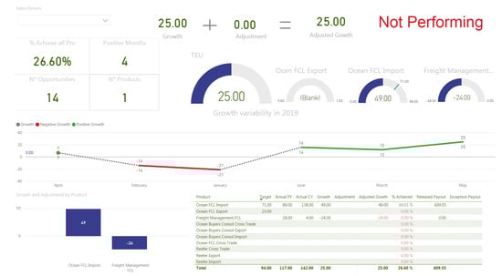 - Not Performing: as someone who has no growth, low or no Opportunities created, low target achievement and low growth over the months on one year