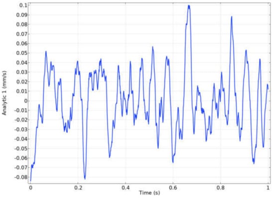 In addition, the steel tape had a spring foundation condition from the left boundary and uploaded velocity from the opposite boundary as shown in Figure 10. Experimental measurement tape velocity data were used us a set velocity boundary condition in simulation as shown in Figure 12. The analytic velocity function of steel tape’s end from the experiment (Figure 12) was used for the set velocity as one of boundary conditions for simulation as shown in Figure 10.