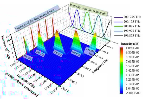 On the assumption that the mode-locked femtosecond laser has a uniform spectrum over its spectral range, and the optical frequency of the jth mode is the peak frequency in the spectrum of the light rays captured by the fiber detector at the condition where θ = θ0 (≠0), the following relationship should be satisfied [58]:
