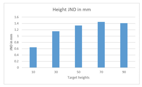Just noticeable difference height in mm for height judgements.