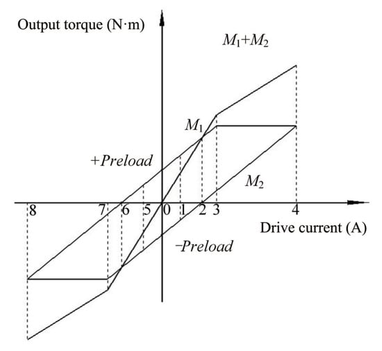 The torque balance equation of the double-drive servo motor is shown in Equation (3).