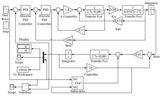 This section will analyze the influence of gear gap on C-axis drive system of super-heavy vertical milling lathe based on the established double-motor dynamics model. A backlash module was added between the corresponding two drive gears and large gear in Matlab Simulink to study the actual situation of dual motor drive under the influence of backlash. The control block diagram is shown in Figure 3.
