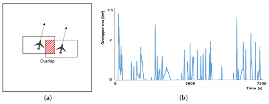 Overlapped reconnaissance and area: (a) An example of overlapped reconnaissance; and (b) overlapped area simulated for 7200 s.
