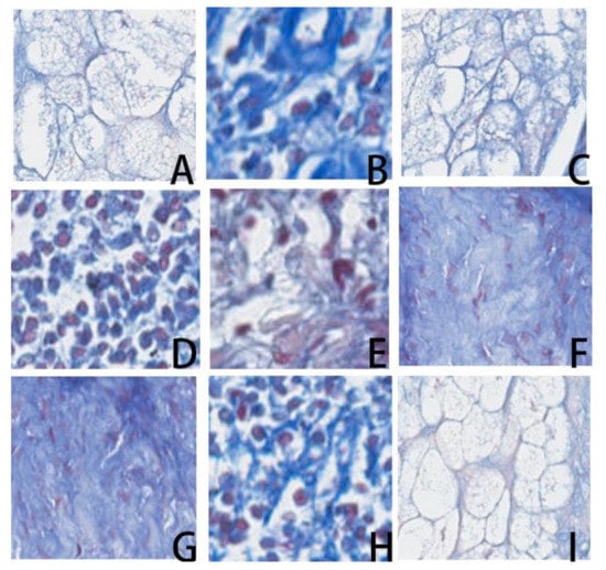 From left to right and top to bottom to have A–I images, they are contamination (images A, F), hair follicle and hair shaft (images B, H), corneal layer of epidermis (images C, D), amorphous background staining (images E, G, and I) collected as negative samples in the faint group.