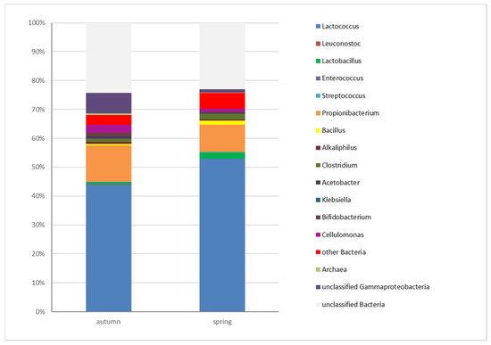 - Porcellato, D.; Skeie, S.B. Bacterial dynamics and functional analysis of microbial metagenomes during ripening of Dutch-type cheese. Int. Dairy J. 2018, 61, 182–188. [Google Scholar] [CrossRef]