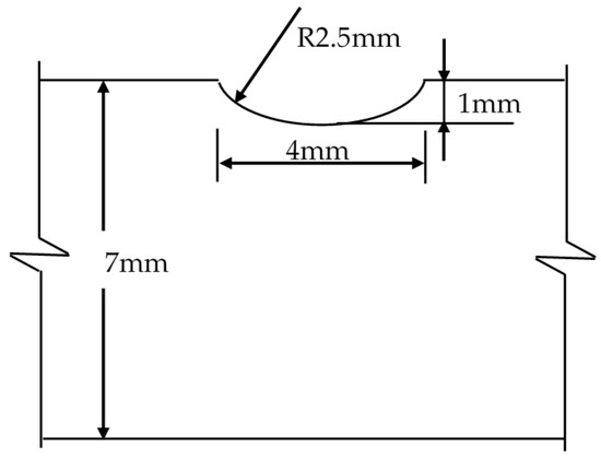 In order to investigate the influence of width of machine-cut notches on the fatigue crack propagation of steel wire, semi-ellipsoidal notches with different widths are used for the test in this paper. The widths are taken as 4 mm, 5 mm, 6 mm and 7 mm respectively. The depths of semi-ellipsoidal notches are all 1 mm. The schematic diagram of steel wire and corresponding wire specimen with semi-ellipsoidal notches of different widths are shown in Figure 20.