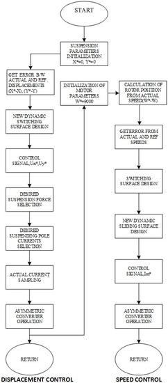 Stepwise flow chart for the implementation of the dynamic sliding mode control of the bearingless switched reluctance motor (BSRM).