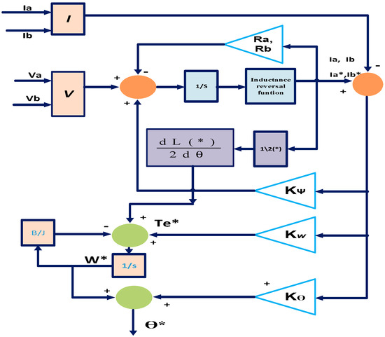 Similarly, the motor equivalent observer state vectors’ current, torque, flux linkages, speed and positions are modelled from the actual motor main winding phase voltages and currents, which are given collectively in Equations (16) to (20):