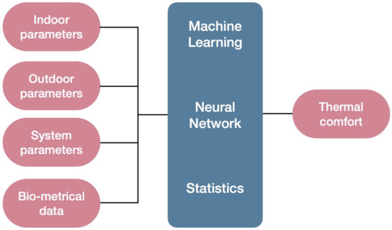 Each study had its own special set of predictive variables, but all of them may be divided into the following categories: indoor and outdoor parameters (such as temperature, humidity), system parameters (such as HVAC control) and bio-metrical data (such as heart rate, skin temperature).