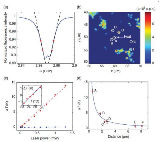 - Kucsko, G.; Maurer, P.C.; Yao, N.Y.; Kubo, M.; Noh, H.J.; Lo, P.K.; Park, H.; Lukin, M.D. Nanometre-scale thermometry in a living cell. Nature 2013, 500, 54–58. [Google Scholar] [CrossRef]