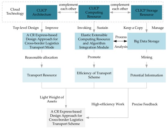 This paper describes the development and plans for the implementation of a cloud-based logistics platform to enable and optimize cross-border shipping, using the China Railway Express (CR Express) in the context of China’s recent One Belt and One Road (OBOR) initiative as an example of an extremely complex system that is running at suboptimal efficiency. We design a cross-border logistics information cloud platform (CLICP) and its architecture. The proposed CLICP comprises a hybrid cloud model with three layers of cloud services. We also examine the CLICP’s operation and the design of the platform’s functions, including core business and value-added service functions, such as real-time bidding, freight information push, and carrier one-stop service management functions. Finally, we propose a model for deploying our CLICP. Our study makes a significant contribution to the literature because of its hybrid cloud model architecture and for the completeness of its functionality. The study also has a good application prospect for the operation of CR Express and will play a better supporting role in cross-border logistics.