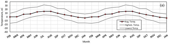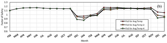 (a) Temperature distribution in 2017–2018 and (b) difference in the factor of safety considering freeze–thaw influence.