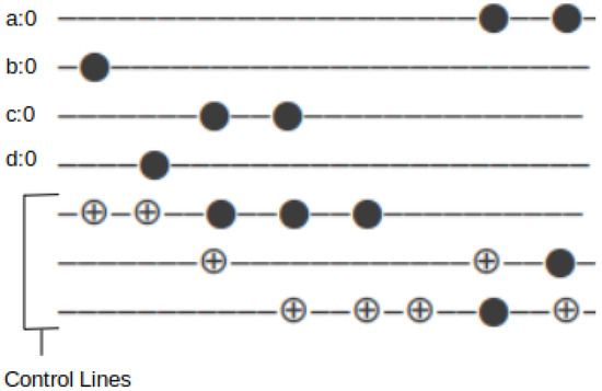 - Hawash, M.; Abdalhaq, B.; Hawash, A.; Perkowski, M. Application of Genetic Algorithm for Synthesis of Large Reversible Circuits using Covered Set Partitions. In Proceedings of the Fourth IEEE International Symposium on Innovation in Information Communication Technology (ISIICT 2011), Amman, Jordan, 29 November–1 December 2011; Volume 1. [Google Scholar]